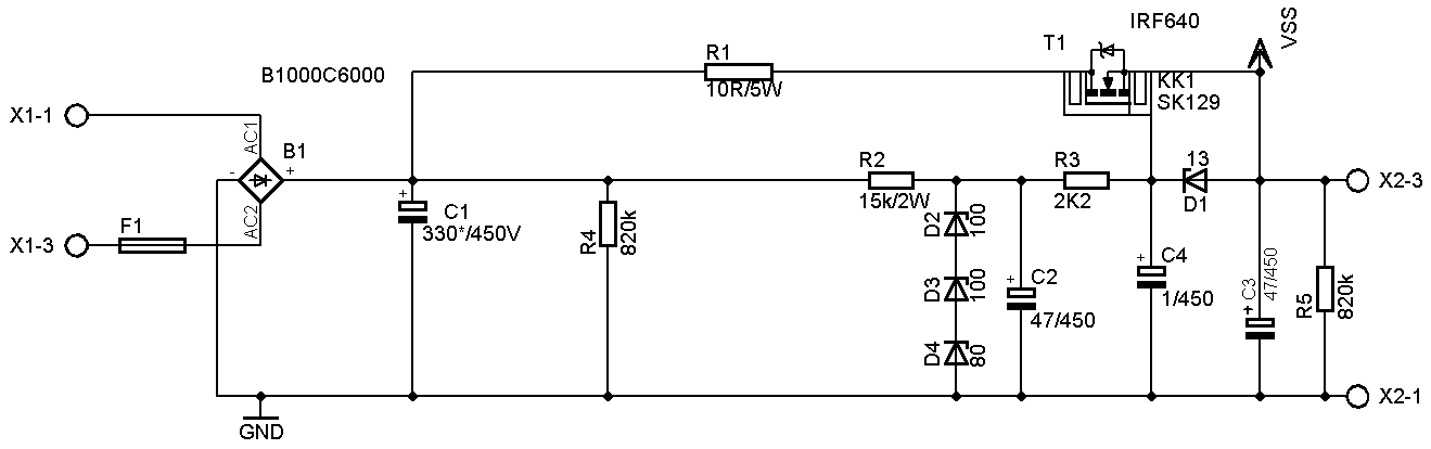 In der Regel reicht eine Vorspannung von 15 – 20V Aus. Das Heist, wenn sie 300V DC Benötigen, dann sollte ca. 315 – 320 DC Vorhanden sein. Im Falle Das sie aus welchem Grunde auch immer z.b. von 400V DC auf 250V runter gehen, dann Sollte R2 angepasst (erhöht) werden damit die ZD nicht überlastet werden. Beachten sie dabei auch die Verlustleistung!