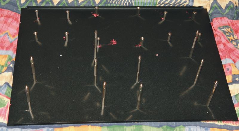 Ich habe zum Anzeichen die Leiterplatte auf das Blech gelegt und die Löcher Übertragen.