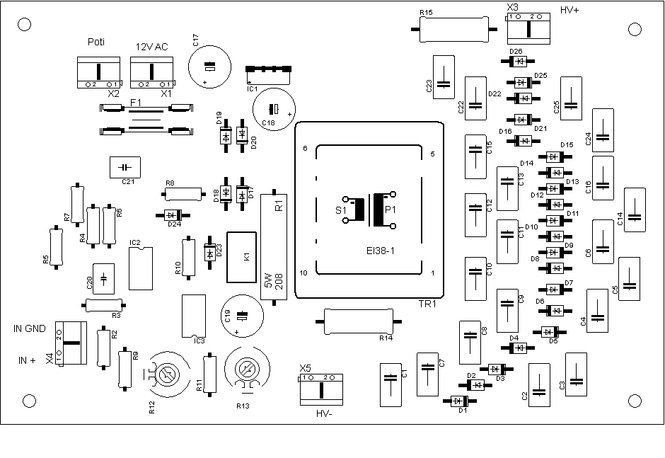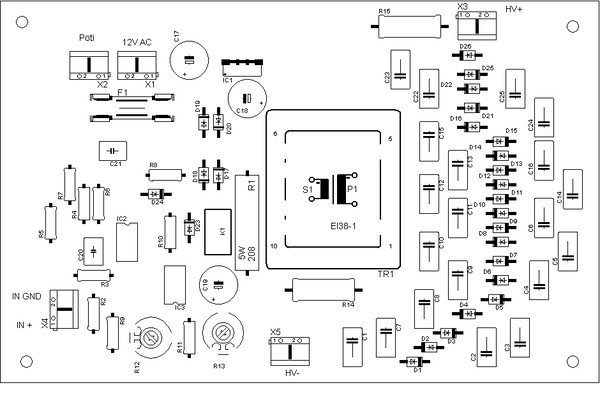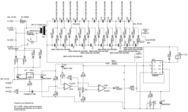 Hallo Markus, Ich habe die Kaskade nun zusammen gebaut und ausprobiert. Nur ist der HV Regelbereich für meine ESL etwas zu klein geraten. Meine ESL sind da schon etwas Älter und die Folie erneuern möchte ich erst einmal nicht. So Änderte ich die Platine wie folgt etwas Ab. Ich habe dir die Bilder geschickt, damit du deinen Kunden die auch das Problem haben Weiter helfen kannst. Du darfst sie gerne auf deiner Webseite hoch laden. Von der Einschaltautomatik bin ich Sehr Begeistert ! ! !