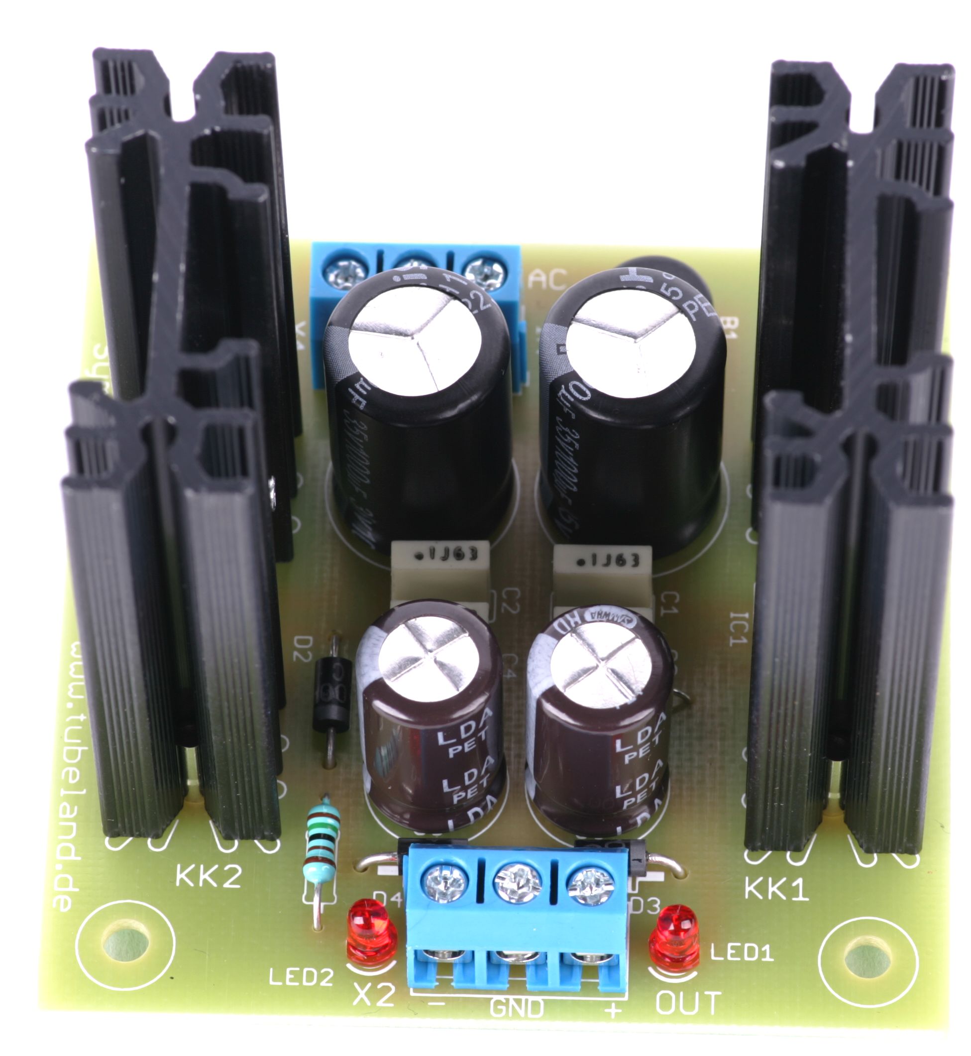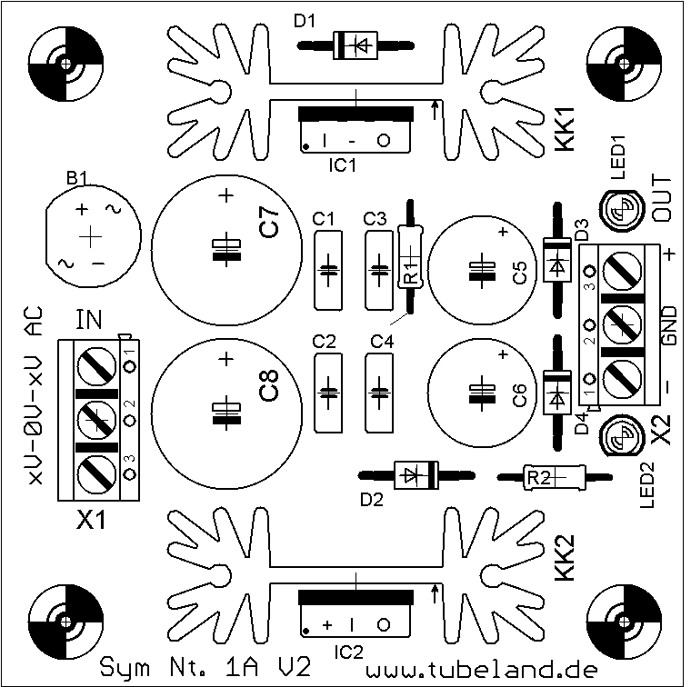 Die V2.0 Verfügt über Zusätzliche LED´s. Laut Hersteller der 78xx 79xx Festspannungsregler Serien, benötigen diese einen Kleinen Verbraucher damit die Festspannungsregler Korrekt Arbeiten Können! Die LED´s Als Verbraucher Reichen Völlig aus. Eine Kontroll Messung ist nun ohne weitere Verbraucher Möglich!