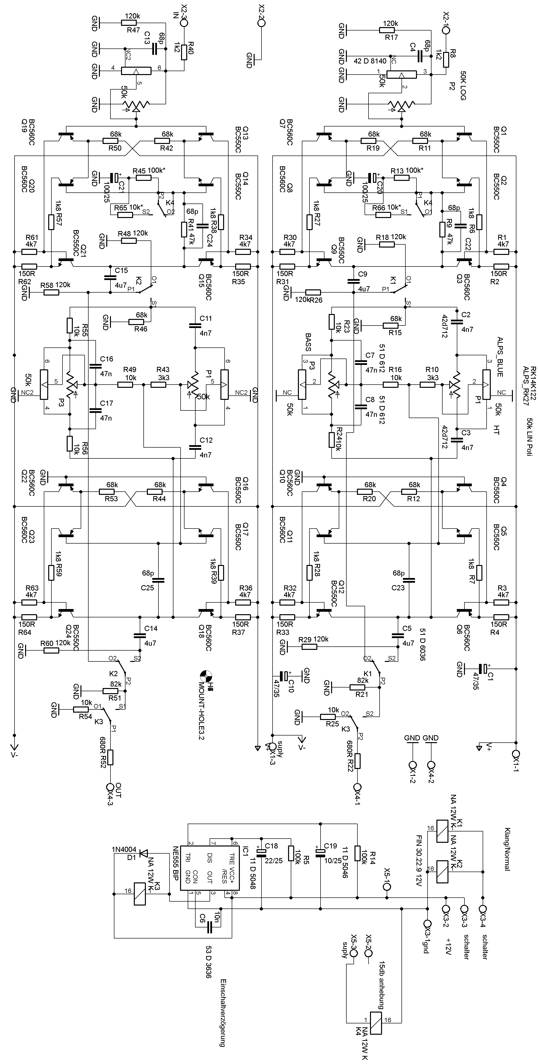 Im Schaltplan sind Volume und Klangregler Doppelt Eingezeichnet. Das liegt Daran das hier gewählt werden kann Welche Potis sie einsetzen möchten. Sehr gute Standart oder High end Potis.