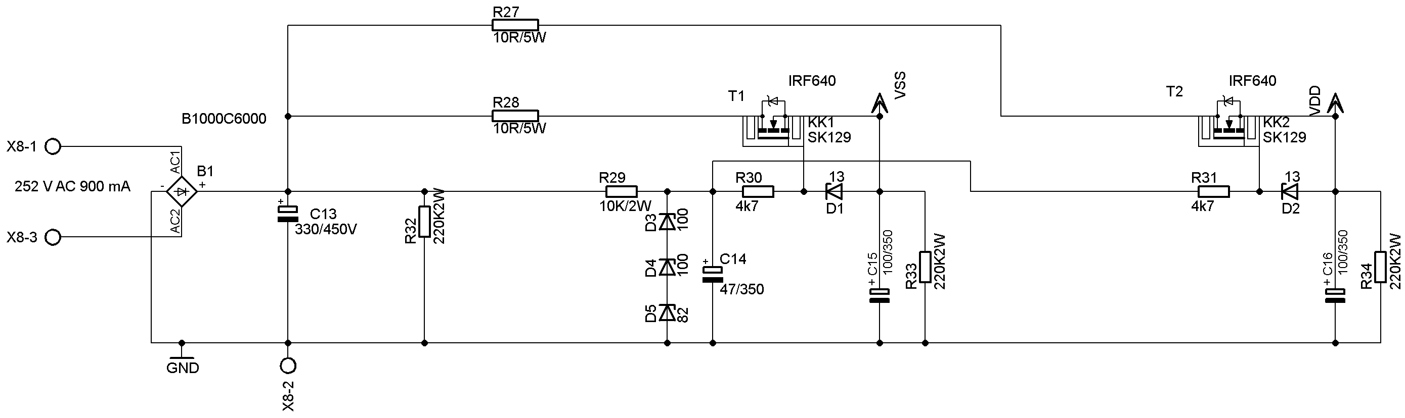 Im Algemeinen sollte die Anoden Eingangsspannung ca 10 -20 V über die Nutzspannung liegen, Somit hält sich die Verlustleistung in Grenzen. Damit der Netztrafo nicht all so warm wird sollte er wie oben Angegeben überdimensioniert sein.