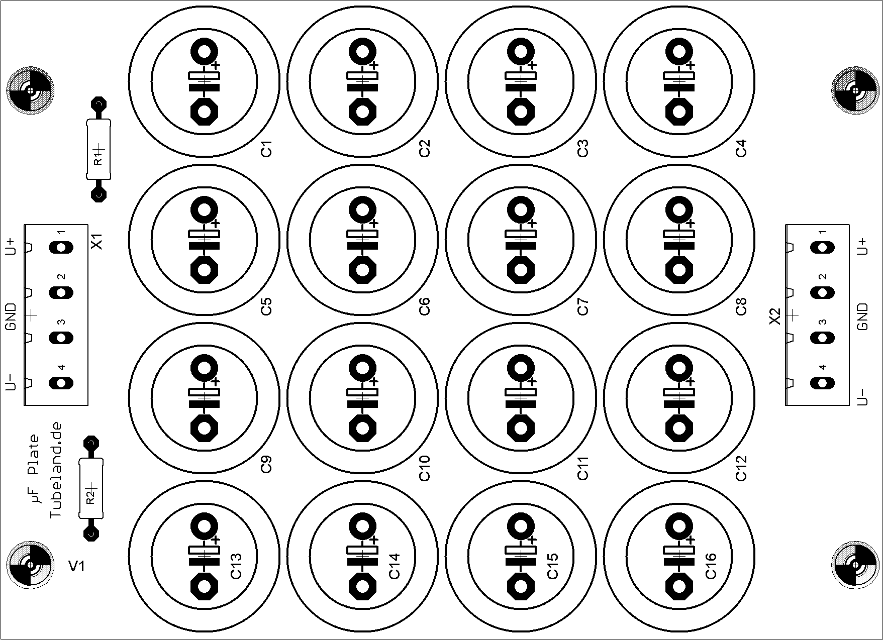 Die Bestückung der Leiterplatte ist  einfach. Auch Können die Kondensatoren gegen Andere Typen getauscht werden, Z.b. bei Niedrigere Betriebsspannung oder andere Kapazitäten.