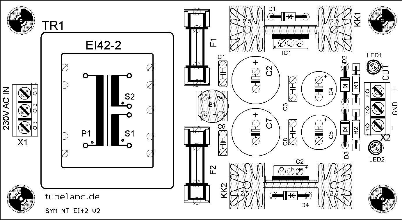 Symmetrisches Audio Netzteil mit EI 42 6VA V2.0 2020
