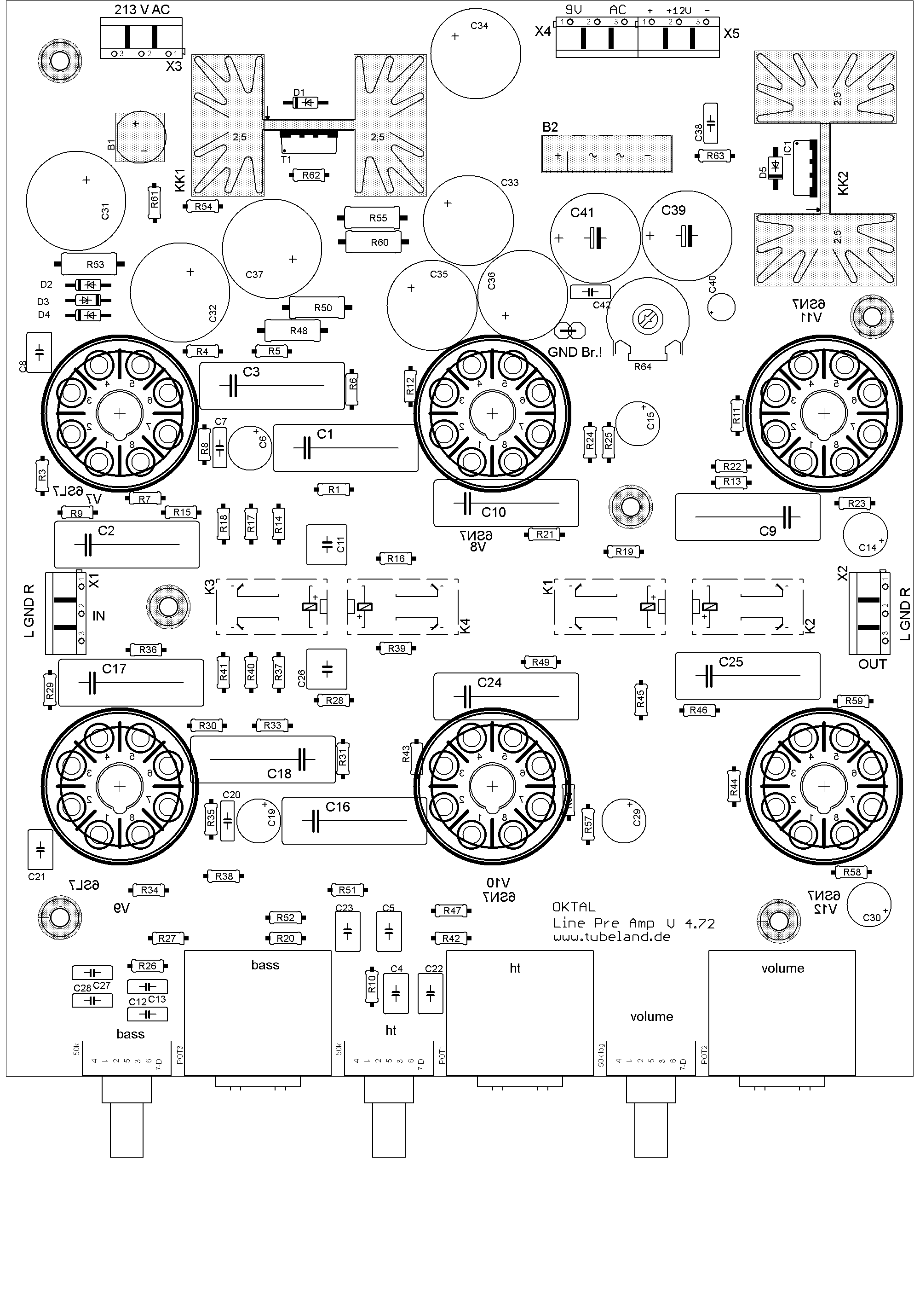 Ein Premium Pre Amp mit Klangreglung. Und diesmal als OKTAL Ausführung. Somit ist es jetzt nun Möglich auch Schöne Amps mit Röhren auf zu bauen die eine Oktal Fassung benötigen. Es gibt mittlerweile sehr viele Röhren von verschiedenem Hersteller sowie auch Neu Produktionen solcher Röhren. Wegen der Fassung sind diese meist auch größer.