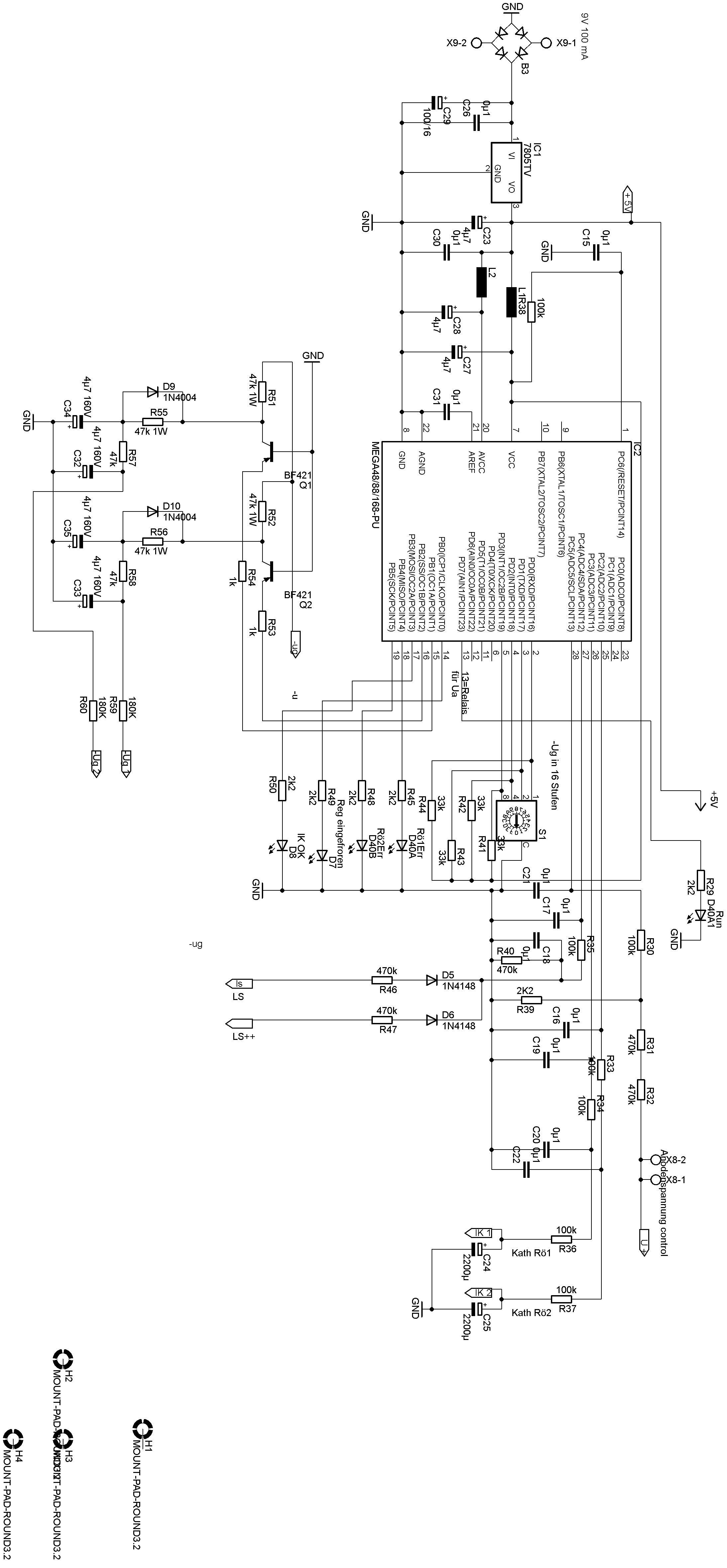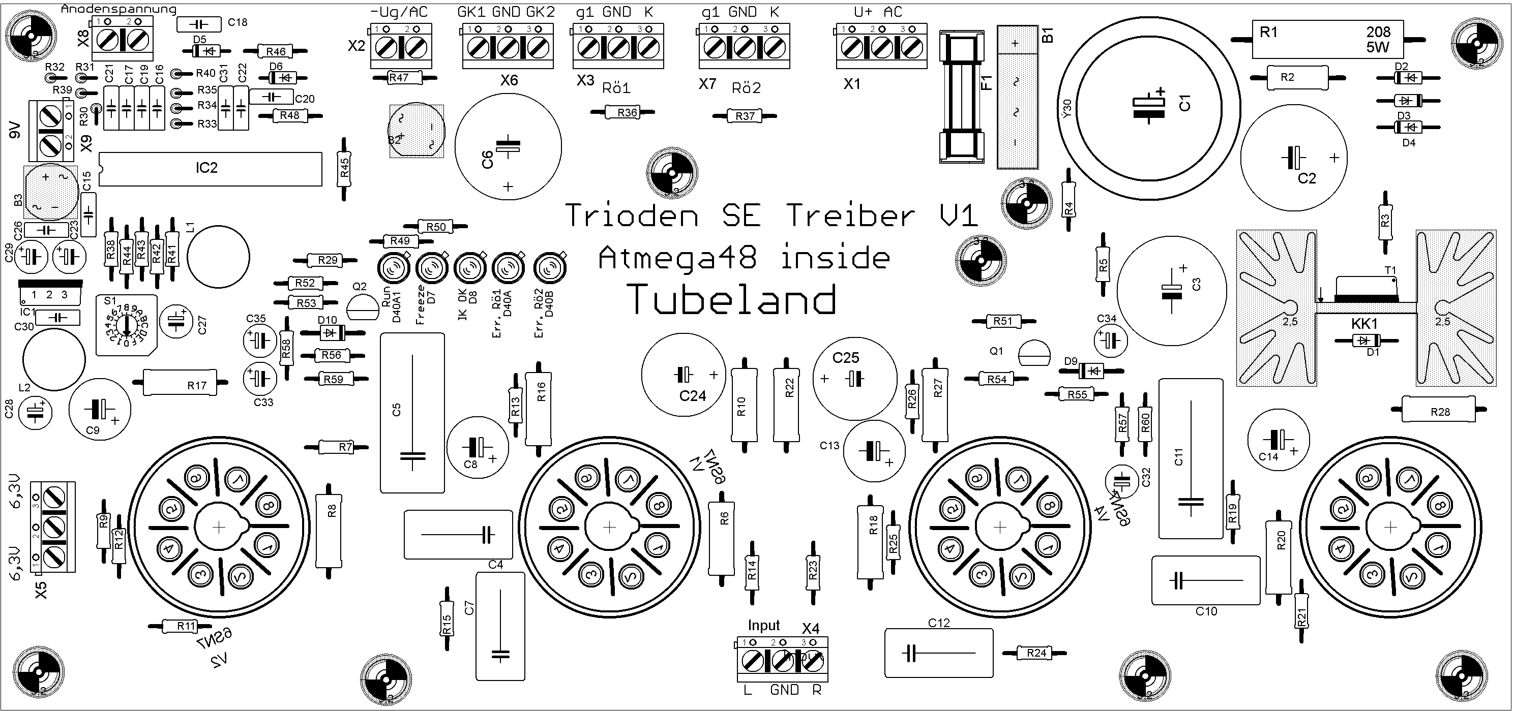 Unter der Voraussetzung das sie auch den Atmega48 einsetzen, müssen sie das G1 und die Katode der endröhre mit dem Bord Verbinden!