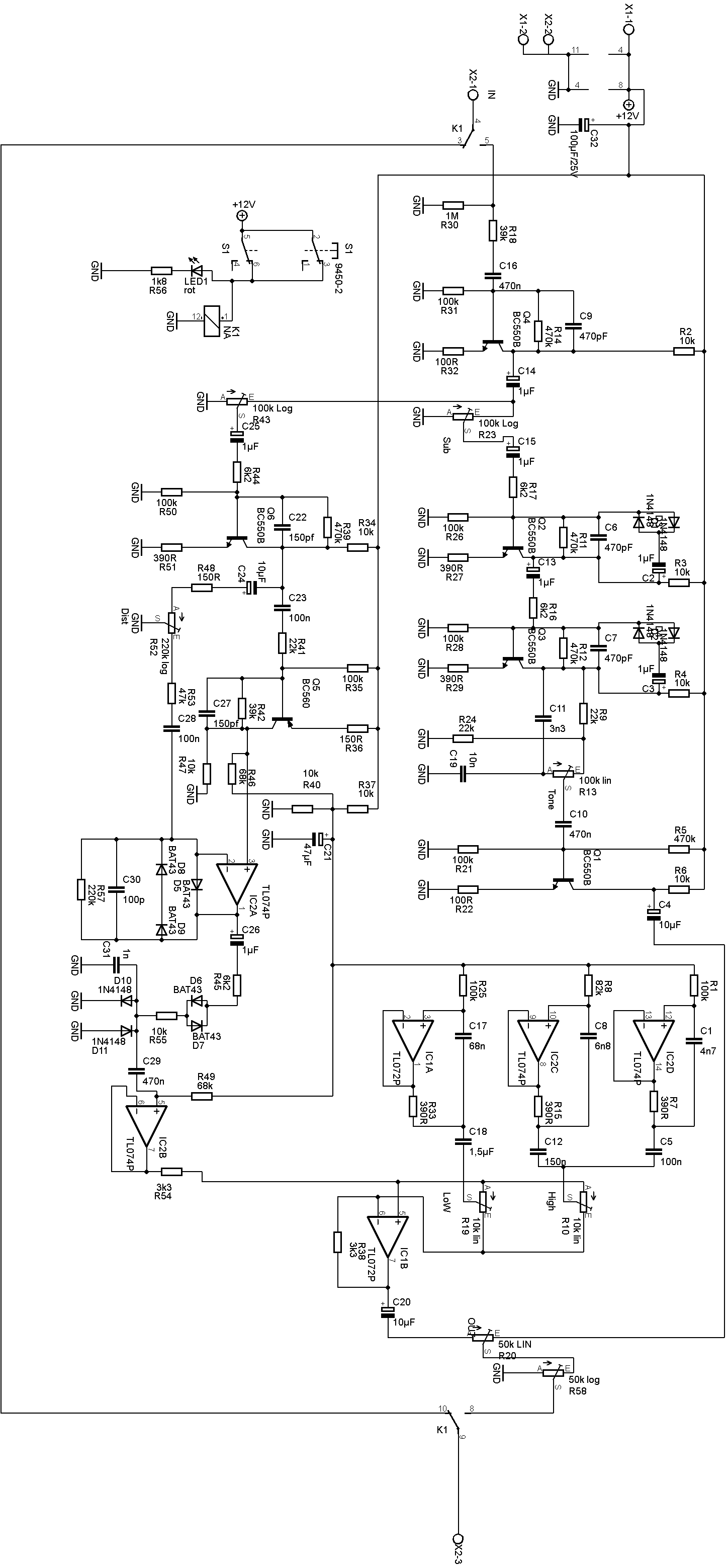 Hier wird die Verzerrung im oberen Kanal mit Transistoren Realisiert.