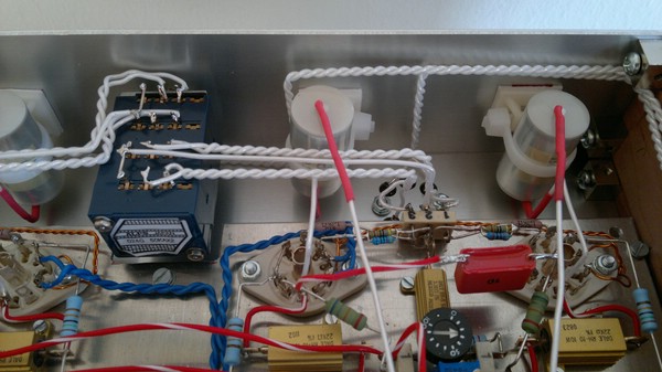 Das eine Ende dieser Widerstandsreihe liegt an den Kathodenwiderständen der beiden EF860 an, dies ist der so genante „virtuelle Massenpunkt“.
