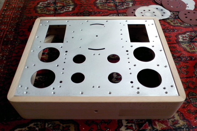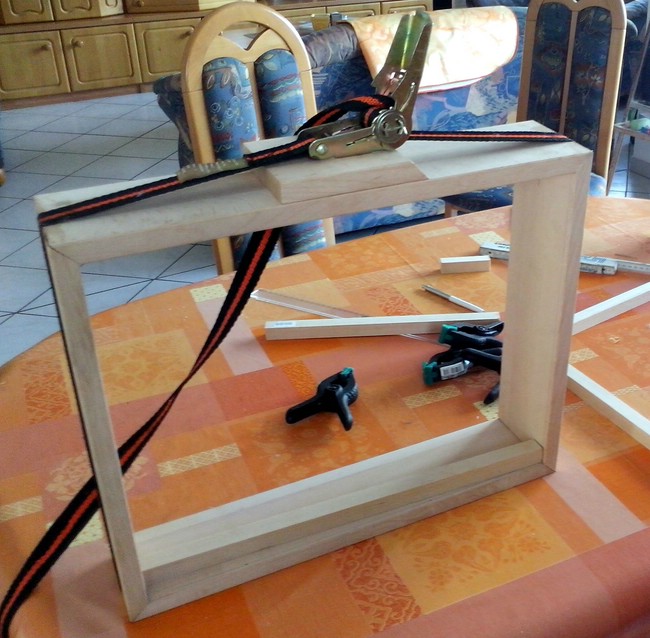gehäuse ist auch Leimholz Buche (massiv), auf Gehrung gesägt, verleimt, verstärkt in den Ecken, von außen per Hand mit